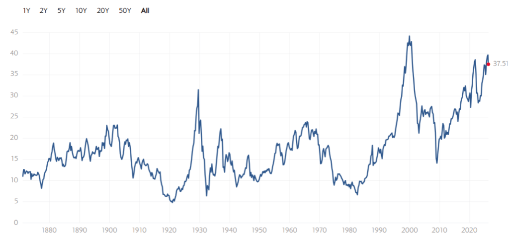 Shiller PE Ratio chart, historic, and current data. Current Shiller PE Ratio is 38.31, a change of +0.31 from previous m...
