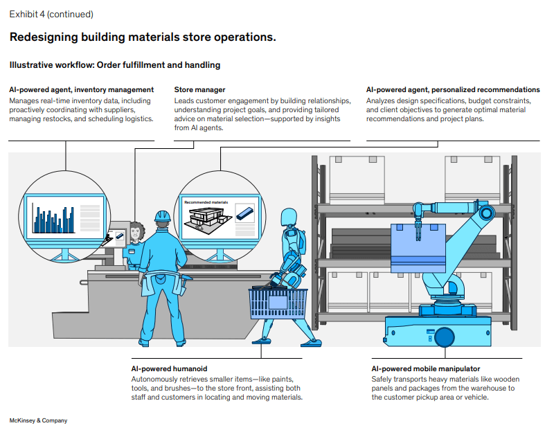 私たちの自動化導入の中間シナリオによれば、AIを動力源とした自動化は、2030年までに米国で2.9兆ドルの経済的価値を解き放つ可能性があります。この利益を実現するためには、個々のタスクを自動化するだけでは不十分です。人間、エージェント、そしてロボットが効果的に協働できるよう、「ワークフロー全体」を再設計することが不可欠となります。