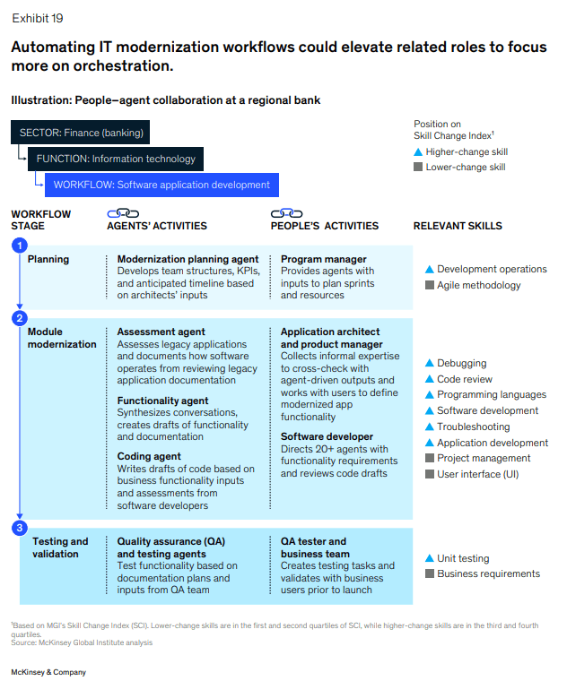 プロセスを加速させるため、この銀行は複数の近代化タスクにAIエージェントを使用するパイロットプロジェクトを開始しました(図表19参照)。