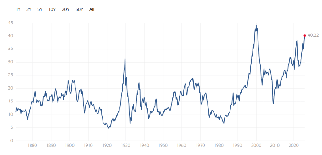 Shiller PE Ratio chart, historic, and current data. Current Shiller PE Ratio is 38.31, a change of +0.31 from previous m...