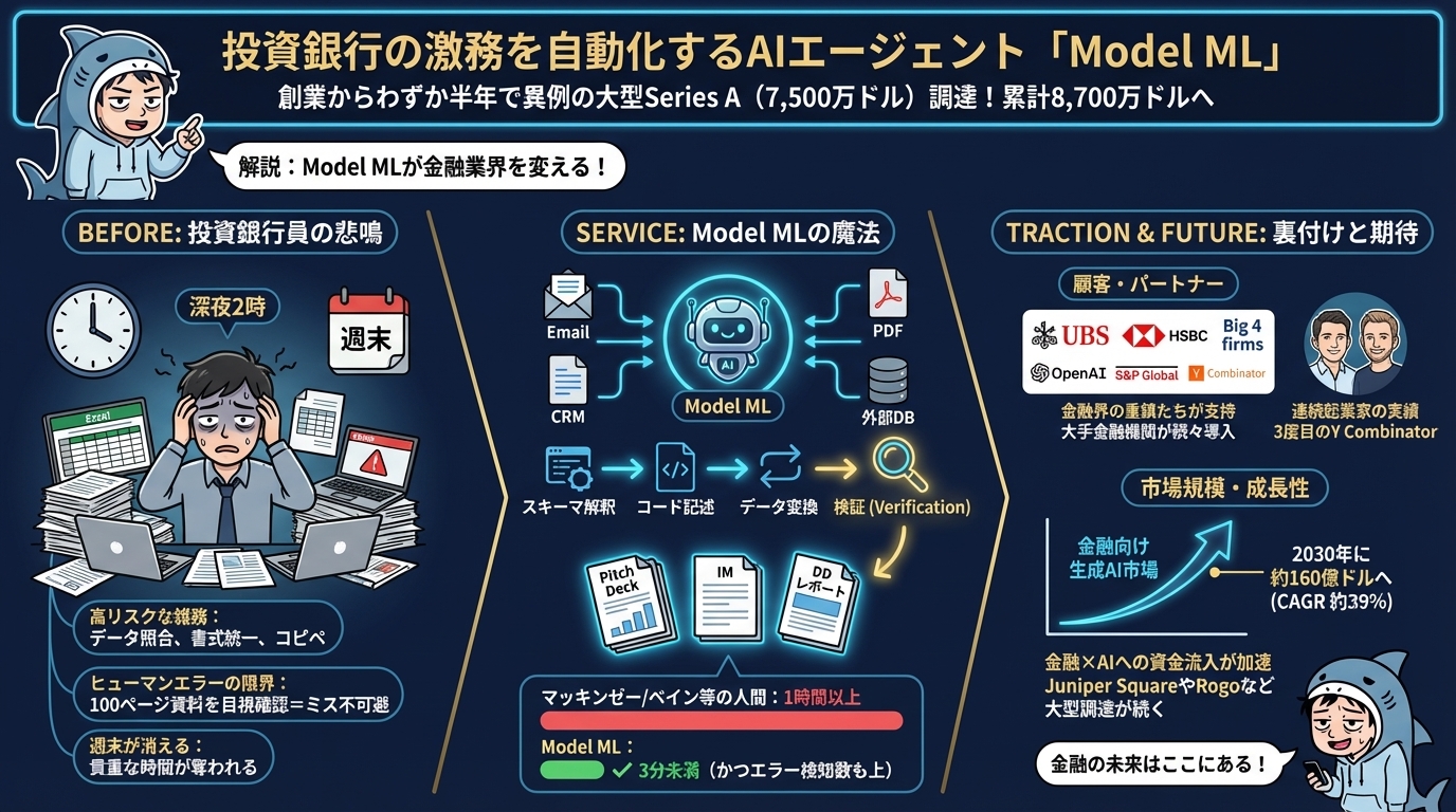 投資銀行のピッチデック作成やデューデリジェンスを AI エージェントで自動化する Model ML が FT Partners 主導で7,500万ドルの Series A を調達、累計8,700万ドルに