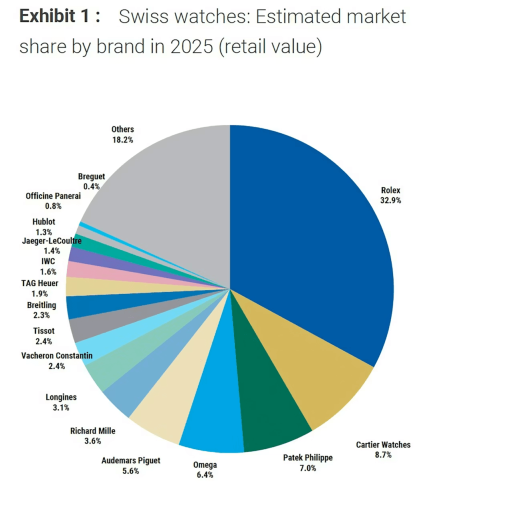 ルガン・スタンレーとリュクスコンサルトが発表した報告書によると、ロレックス、カルティエ、オーデマ ピゲ、パテック フィリップを含むスイスの主要時計ブランドは、2025年に売上高とマーケットシェアを伸ばした。一方で、時計業界の多くのブランドはコストの上昇や小売価格の値上げ、そして移り気な顧客への対応に苦慮している。