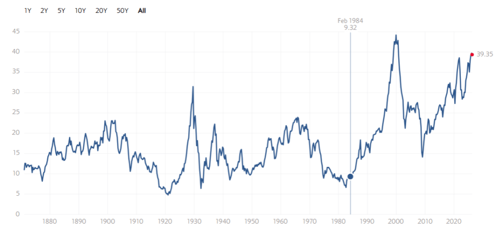 Shiller PE Ratio chart, historic, and current data. Current Shiller PE Ratio is 38.31, a change of +0.31 from previous m...