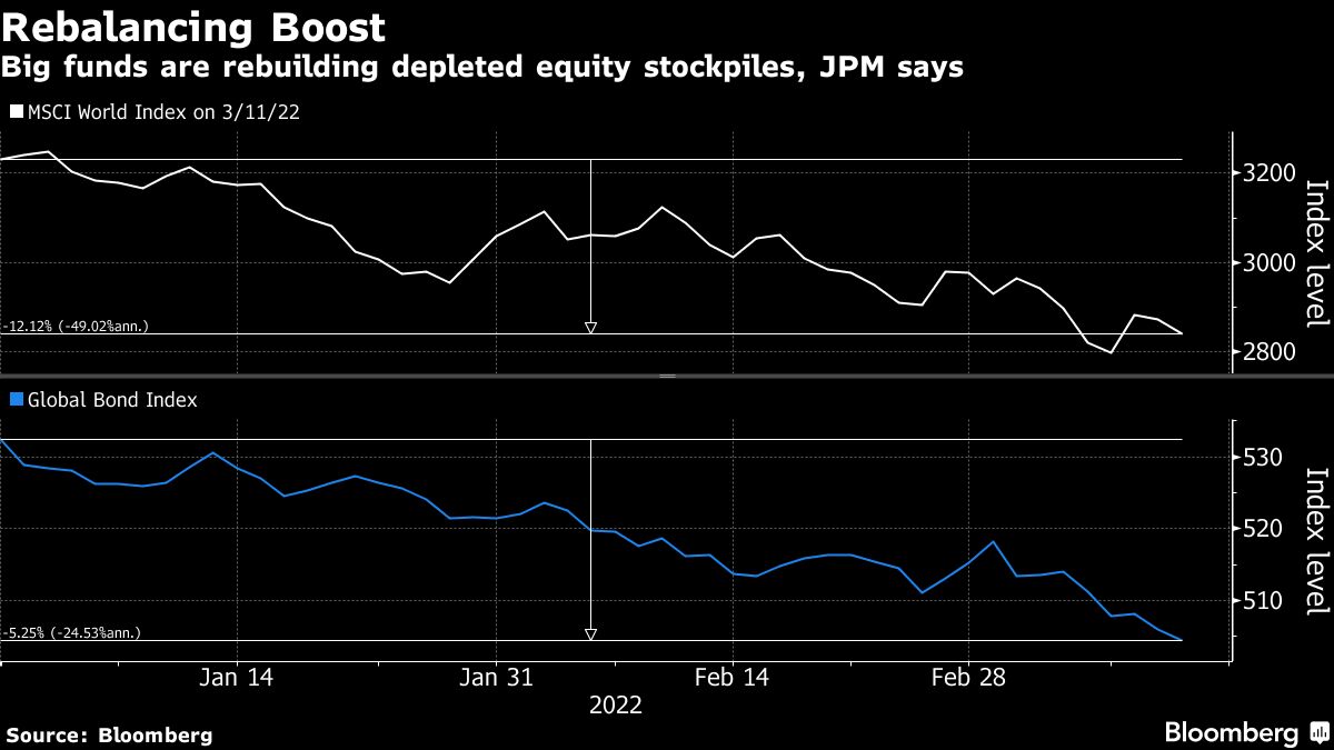 米JPモルガン・チェースは、ロシアのウクライナ侵攻とインフレ高進を受けて評価額が落ち込んだリスクオンのポジションを年金基金と政府系ファンドが再構築する態勢にあると予想。2300億ドル(約27兆1000億円)相当の株式買いにつながり、世界の株...