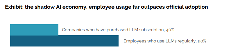 図表:シャドウAIエコノミー、従業員の利用は公式の採用を大きく上回る